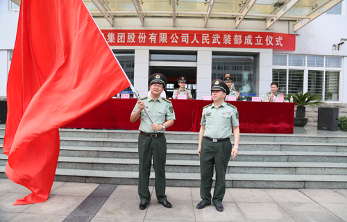 7月30日上午,我公司人民武装部成立仪式在华强广场隆重举行。宜昌军分区参谋长黄石松大校,当阳市委副书记覃绪华,市委常委、人武部部长陈飞东,当阳市人武部政委潘尔龙等领导出席了成立仪式。