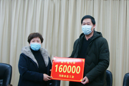 苏琼主席与公司党委书记、董事长万建华进行了座谈交流,深入了解企业疫情防控工作情况、生产经营状况和困难职工生活情况。苏琼对我公司积极抗击疫情,努力降本增效,维护职工权益等方面工作给予了充分肯定。她强调,企业要再接再厉加强工会工作,带领职工听党话、跟党走,弘扬工匠精神、劳模精神,争取在职工中产生更多的劳动模范和先进个人,她叮嘱企业要做好春节期间常态化疫情防控工作,切实维护职工合法权益,确保职工度过一个安定祥和的春节,并代表市总工会为公司送来春节慰问金16万元。随后,苏琼又将慰问金2000元送到宜昌市劳动模范、公司总经理助理施爱民手中,并送上节日的美好祝福。苏琼指出,劳动模范是企业的宝贵财富,为企业发展做出了突出贡献,要在关心他们生活,发挥劳模精神引领方面多做工作。我们要大力弘扬劳模精神、劳动精神、工匠精神,激励广大职工奋勇拼搏,为当阳经济和社会发展做出新的更大贡献。