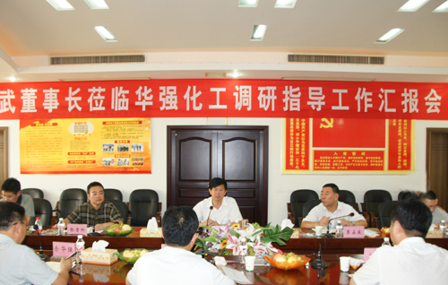 武董事长一行参观了我公司合成氨生产线、型煤生产线、生产调度指挥中心和精细化工园生产装置现场,认真询问了公司产品产量、质量、成品和价格。在调度指挥中心,武董事长详细了解了公司目前的循环经济产业链运行情况。