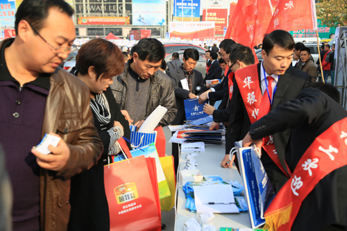 公司展厅前被客商围得水泄不通